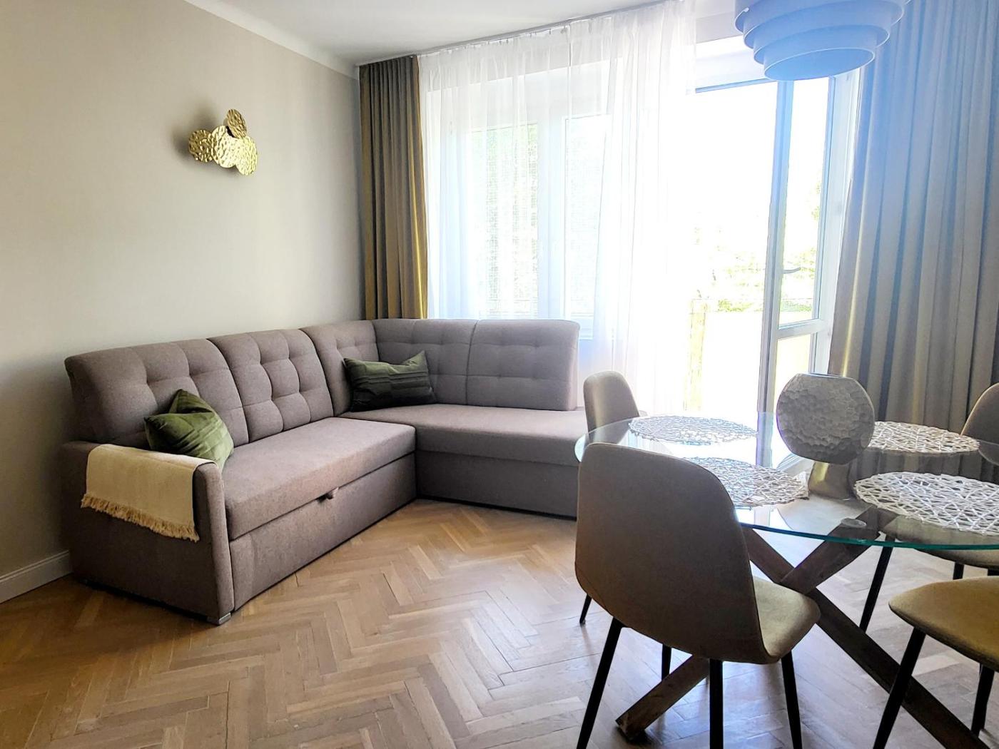 Apartament z 2 sypialniami. In the fully equipped kitchenette, guests will find a stovetop, a refrigerator, a dishwasher and kitchenware. Boasting a balcony with garden views, this apartment also offers a seating area and a flat-screen TV with cable channels. The unit has 2 beds. Apartament - 7 osobowy. Powierzchnia pokoju ok.: 55 mkw.